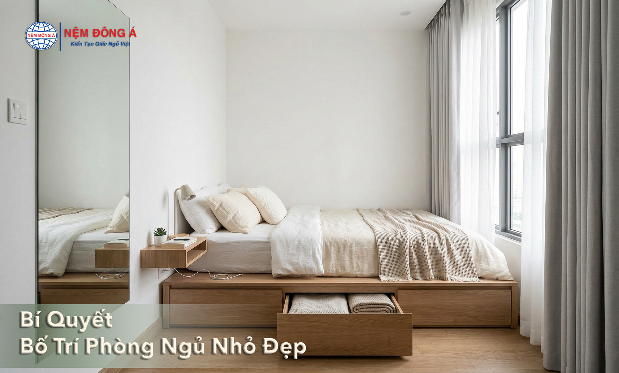 Để sở hữu một không gian nghỉ ngơi hoàn hảo dù diện tích khiêm tốn, bạn chỉ cần ghi nhớ công thức: Giường bục thông minh + Nệm độ dày vừa phải/Nệm gấp 3 + Tông màu sáng.