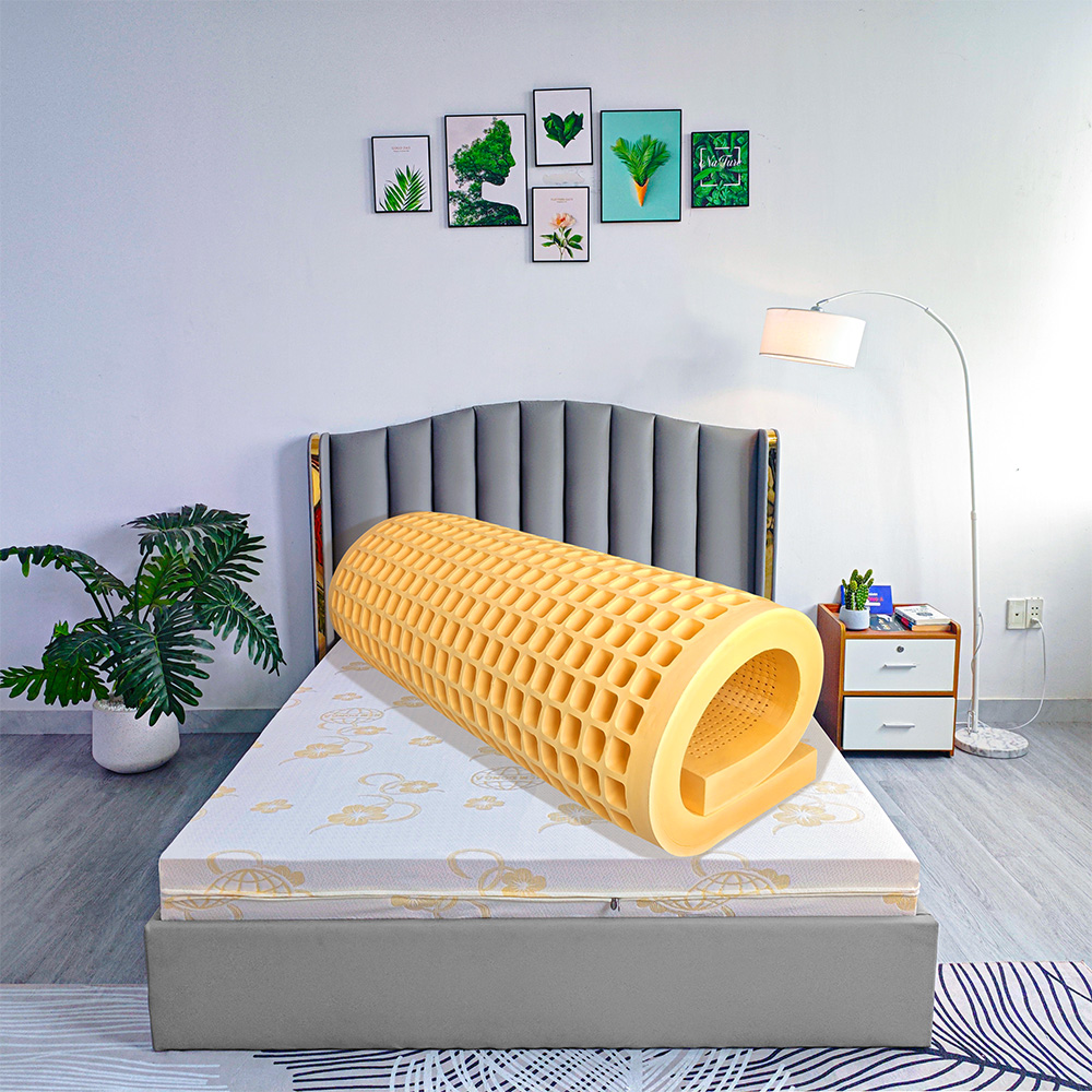 - Cấu trúc nệm lỗ tròn mặt trên, lỗ vuông mặt dưới giúp nệm luôn thoáng mát, không gây bí bách, tạo cảm giác thoải mái khi ngủ.